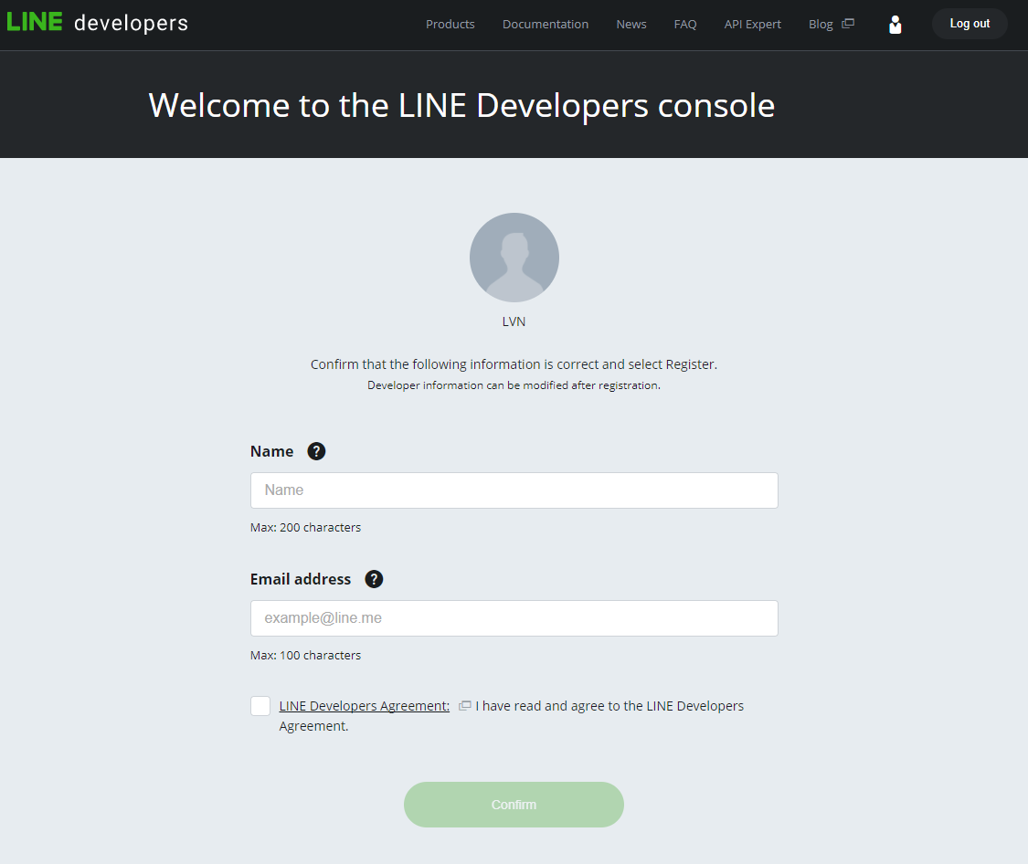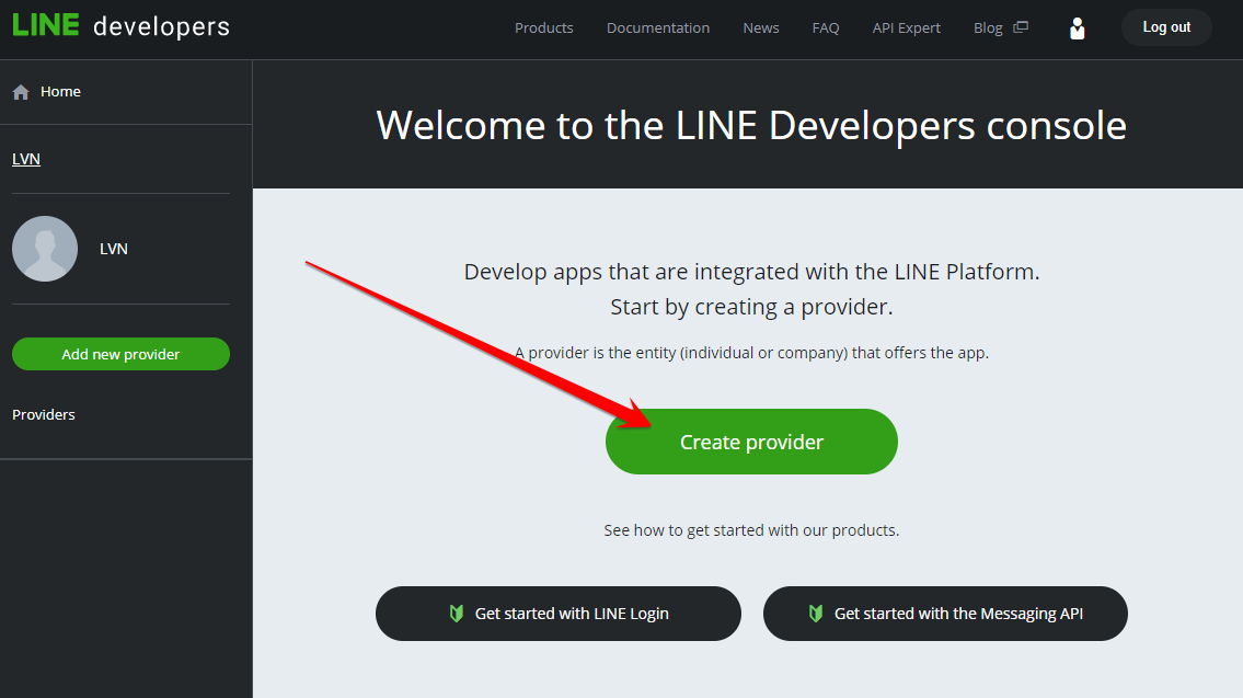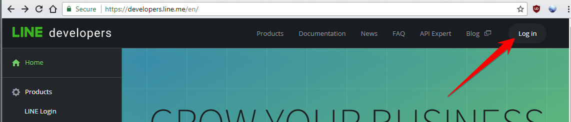 1. Please go to the https://developers.line.me and click “Login”