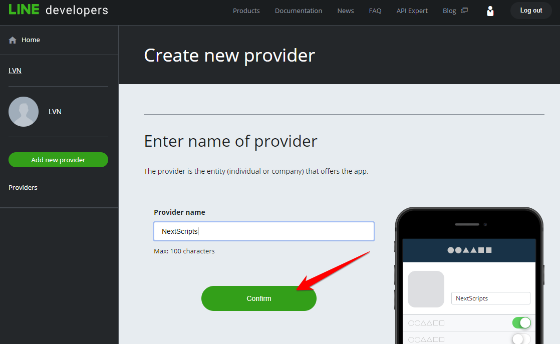 4. Once you in, click “Create Provider”.