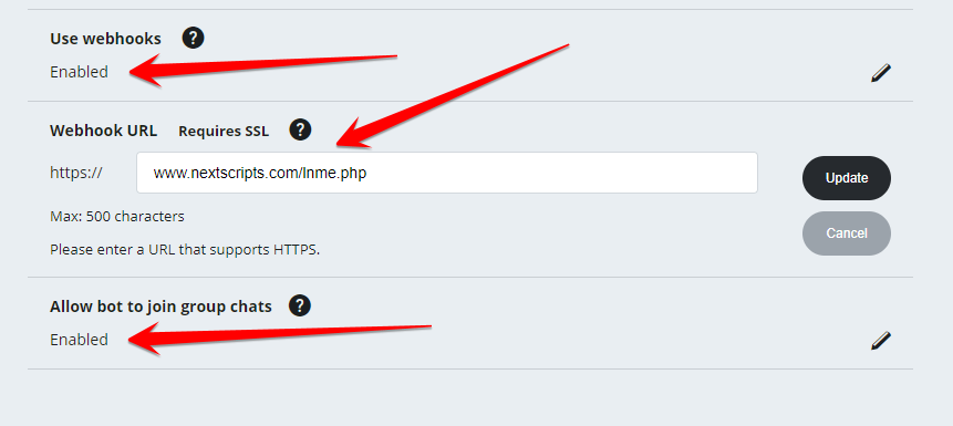 6. Save the file. Enter its URL to the “Webhook URL”. (Do not enter https:// part of the URL).