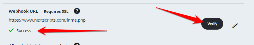 7. Click Verify to make sure your Webhook URL is working.