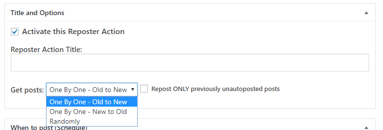 – Dates – Older/Newer – You can repost only posts older or newer then specified periods of time. This is useful if (for example) you would like to repost only posts that were published earlier then then 3 months ago.