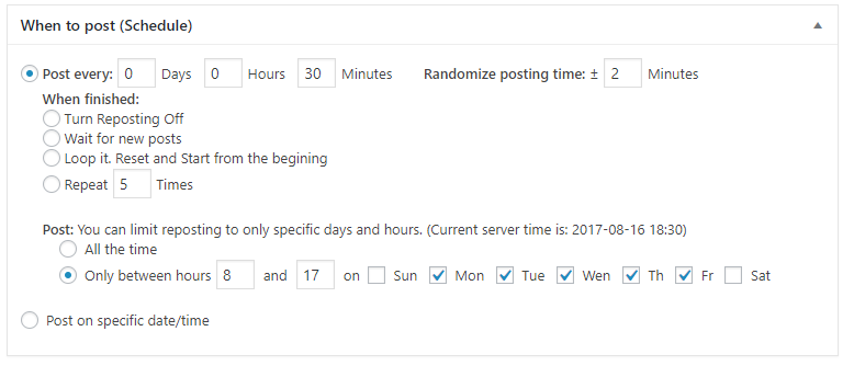 Limit auto-reposting to specific days and times