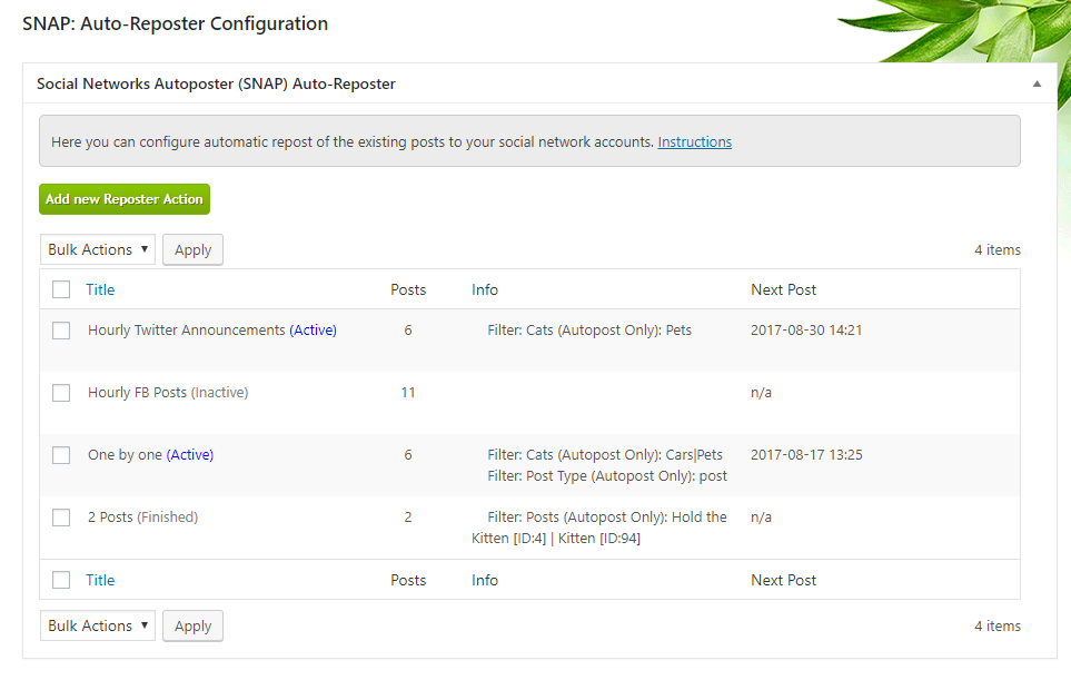 Existing posts auto-reposterReposter Settings